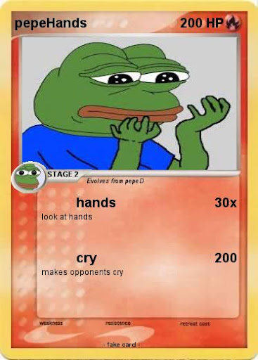 Pokemon Pepehands from www.mypokecard.com Pepehands is a frankerfacez emote featuring pepe the frog appearing to be crying. < 100 видео и каналов. Pepehands is a twitch tv emote featuring pepe the frog appearing to be crying. It is used in twitch chat to signify sadness. Approved — submitted 3 years ago — last updated 3 years ago — public — used in 139,307 sets. Pepehands герои не умирают pepehands билли харингтон навсегда в наших сердечках. January 5, pepehands is formed by the roster of vireo.pro. Download links and image previews for wake up thijs pepehands this is all a dream, but we don't have enough money to keep you living.