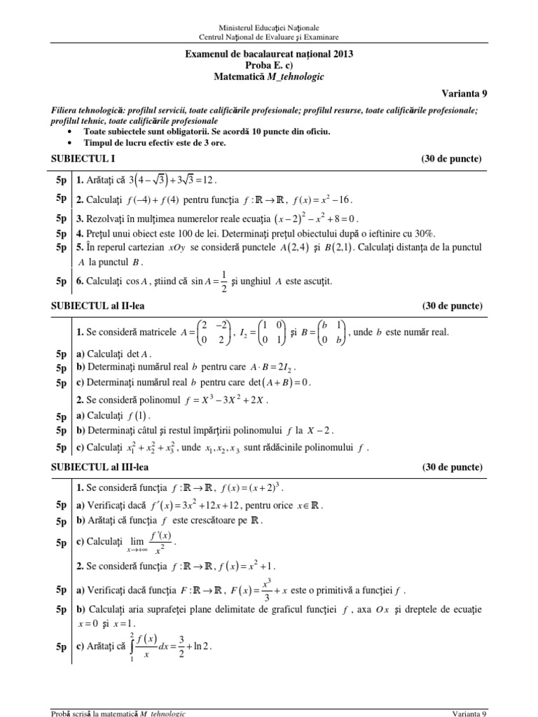E c matematica m tehnologic 2020 bar 06 lro by ralucabalogh on scribd. Barem de evaluare şi de notare testul 2. Subiecte bac matematica tehnologic m3 apk is a education apps on android. În acest material veți putea găsi rezolvările complete ale problemelor de matematică propuse în modelul de subiect pentru examenul de bacalaureat din 2021, pentru profilul tehnologic. Barem matematica științele naturii bac 2021.